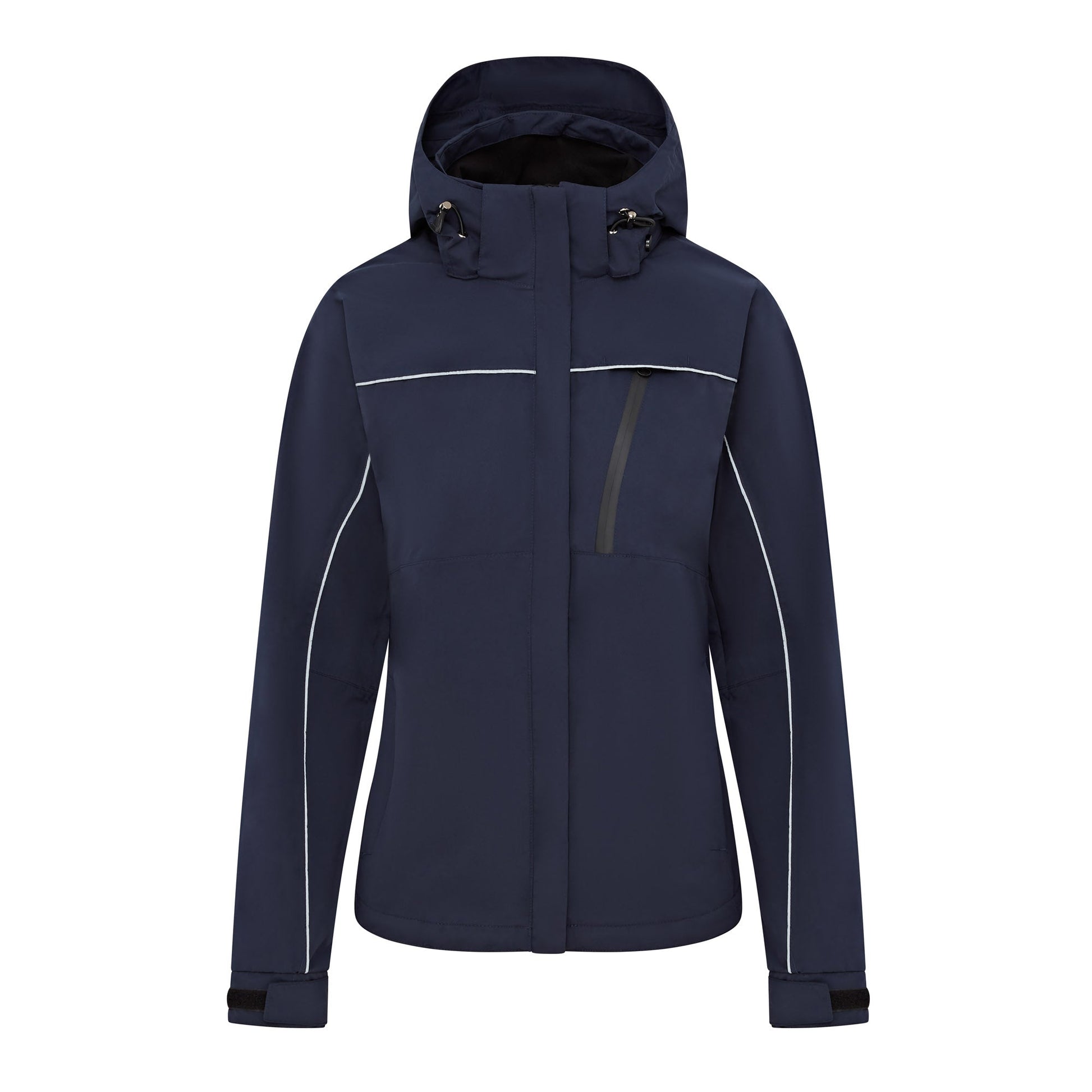 Waterproof riding jacket designed for maximum comfort and freedom of movement. Removeable hood, two zipped riding vents at the back with thigh cut away offer complete protection and comfort in the saddle. Complete with mesh lining for improved ventilation. Anatomic pre-shaped sleeves with adjustable velcro fastening at the cuffs. Three zipped front pockets and zipped inner pocket. Waterproof & breathable to 1000mm.