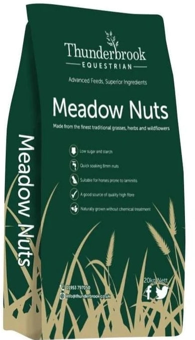 Thunderbrook Healthy Herbal Meadow Nuts are a low sugar, low starch, low nitrate, high fibre forage feed suitable for most horses, ponies and donkeys.